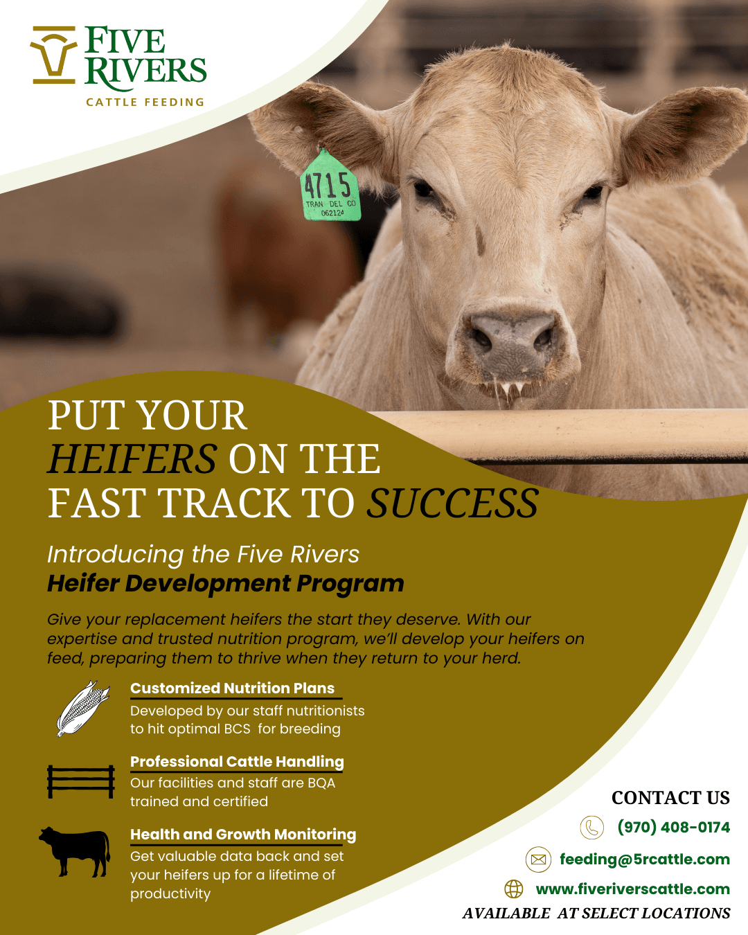 Give your replacement heifers the start they deserve. With our expertise and trusted nutrition programs, we’ll develop your heifers on feed, preparing them to thrive when they return to your herd. For more information about our Heifer Development Program, please reach out using the Contact Us form.
